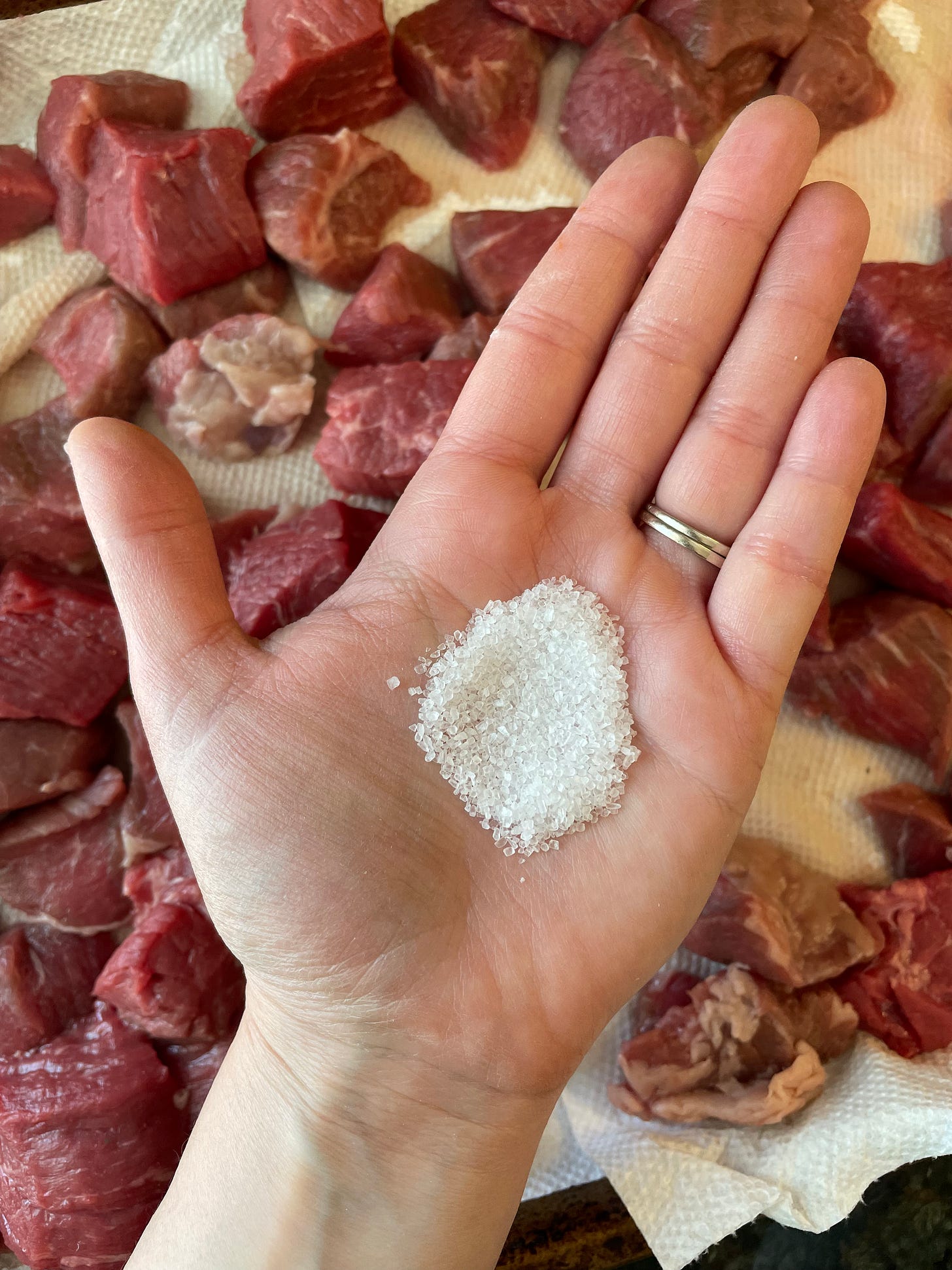 14 years later, the preparation of the dish has taken a different epistemological value for me. Now I don’t feel compelled to get out a ruler and ensure that my bacon lardons are perfectly 1.5 inches long; I know that’s about the length of my thumb from nail to knuckle. Instead of drying each cube of beef by hand in paper towels, I line a baking sheet with towels and spread the entire batch out to dry off. I measure out the half teaspoon of salt for seasoning in the palm of my hand, memorizing its weight and spread the way Judith Jones had done while learning to edit cookbooks, and while teaching me to edit my own. I don’t bother stripping the thyme leaves from the stem, since I know that they’ll get tossed later in the process. And most of all, I know to make it ahead of time, so the stew can be strained, cooked down, and skimmed for fat before I’m rushing it out to the dinner table. I am learning to leave room for my own modicum of grace. My suspicion is that Julia wouldn’t mind too much.
