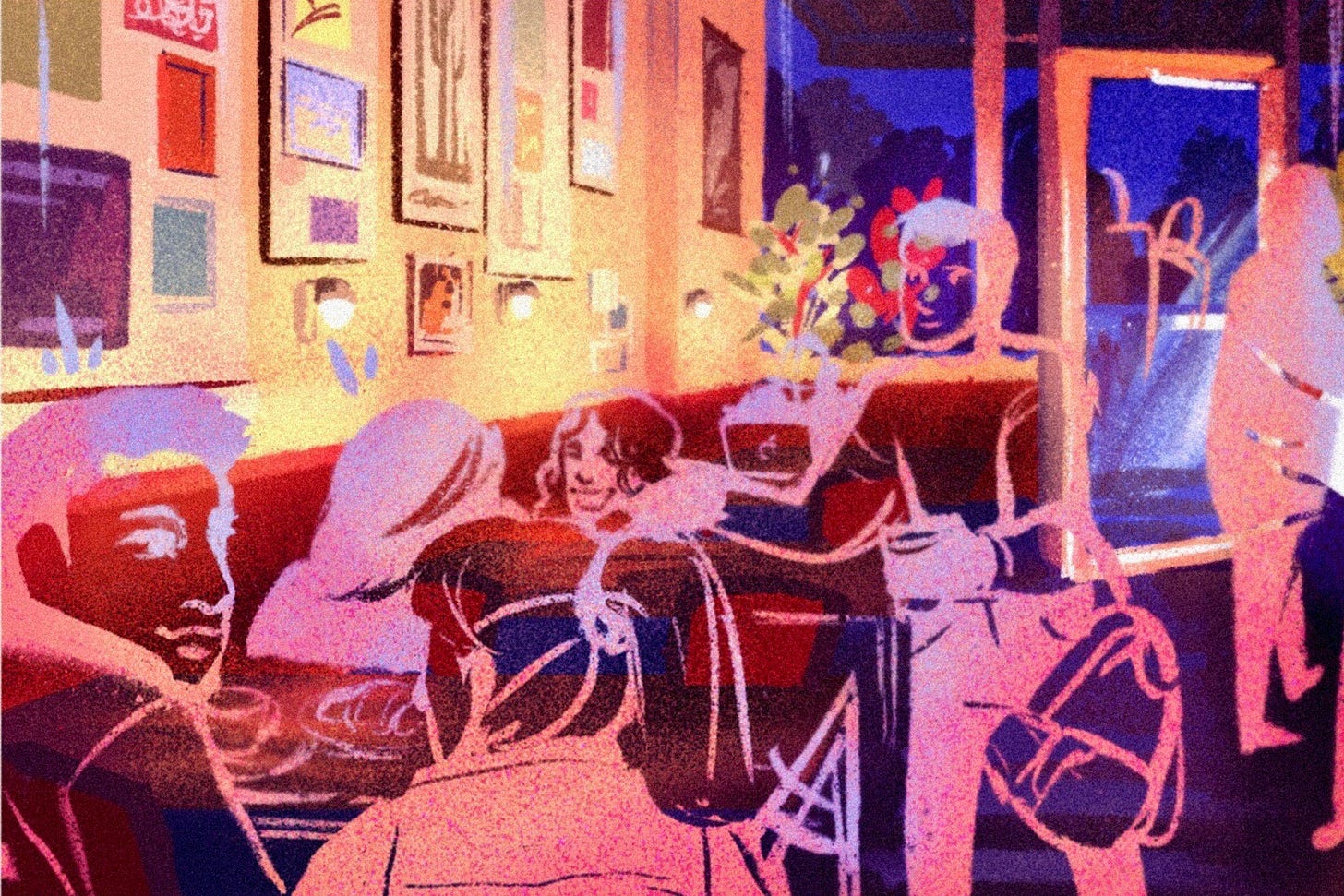 Though I didn’t know myself as a “food person” right away in the city, I could also recognize that some of the value of being in these third spaces was the chance to peer into and interpret other people’s orders. The student drinking shot after shot of espresso next to me while also swirling their finger in the sugar left over from an elephant ear was undoubtedly a poet—someone who took their craft, but also personal pleasure, deeply seriously. The man scribbling with charcoal in an oversized drawing pad while awaiting his third profiterole of the day was an established artist, working towards an upcoming exhibition. This kind of imaginative projection between one’s art and one’s order was even better explored at a bar. Single women ordering whiskey neat, groups of men ordering drinks with umbrellas, these spaces allowed me to see my fellow New Yorkers as complicated, contradictory individuals, each of whom used food to signal something in the public sphere.